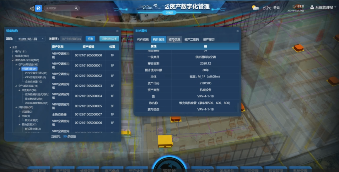二者深度融合,彻底打破“图纸与现场脱节”“数据与空间割裂”的传统壁垒,让每一处资产都拥有可追溯、可交互、可分析的“数字生命体”。管理者轻点屏幕,即可从城市俯瞰视角逐级穿透至建筑内部的一台空调机组,实现从“万里河山”到“方寸零件”的无缝洞察。