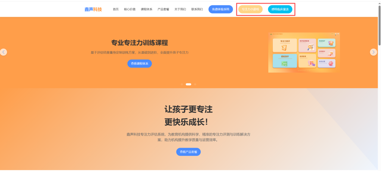 鑫声科技始终秉持“科学、精准、务实”的理念,通过专注力评估与训练系统,为教育机构注入专业教学资源——既帮助机构丰富课程品类、提升教学口碑(家长可直观看到孩子评估与训练效果),也通过标准化的课程体系降低机构教学研发成本、提升运营效率;最终,让每一个孩子都能通过科学训练,拥有良好的专注力,为未来学习与发展奠定坚实基础。