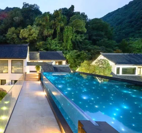 客房区域:定制磨砂亚克力卫浴隔断,通过精准控制透光率(30%-50%)实现 “隐私保护 +采光通透” 的平衡;床头背景墙采用嵌入式亚克力发光线条,以极简设计适配不同酒店风格,既提升夜间氛围感,又避免强光刺眼,兼顾美观与实用。