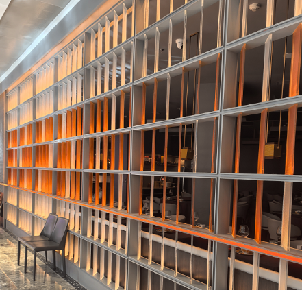 宴会厅与走廊:采用幻彩亚克力隔断与透光吊顶组合,通过多层转印技术实现色彩的自然过渡,搭配激光雕刻的简约花纹,在婚礼、商务宴请等场景中,光线穿透时形成流动光影,提升空间高级感;同时,亚克力材质易清洁、抗污性强,能应对高频使用场景的维护需求。