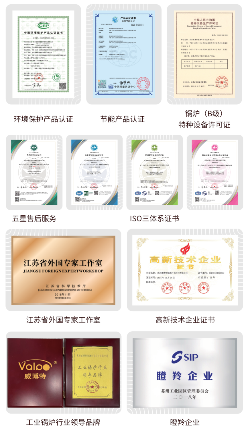 从“江苏省外国专家工作室”,到“高新技术企业”;从 “瞪羚企业”,到 “工业锅炉行业领导品牌”。每一个奖项背后,都是威博特人对品质的执着和对技术的敬畏。